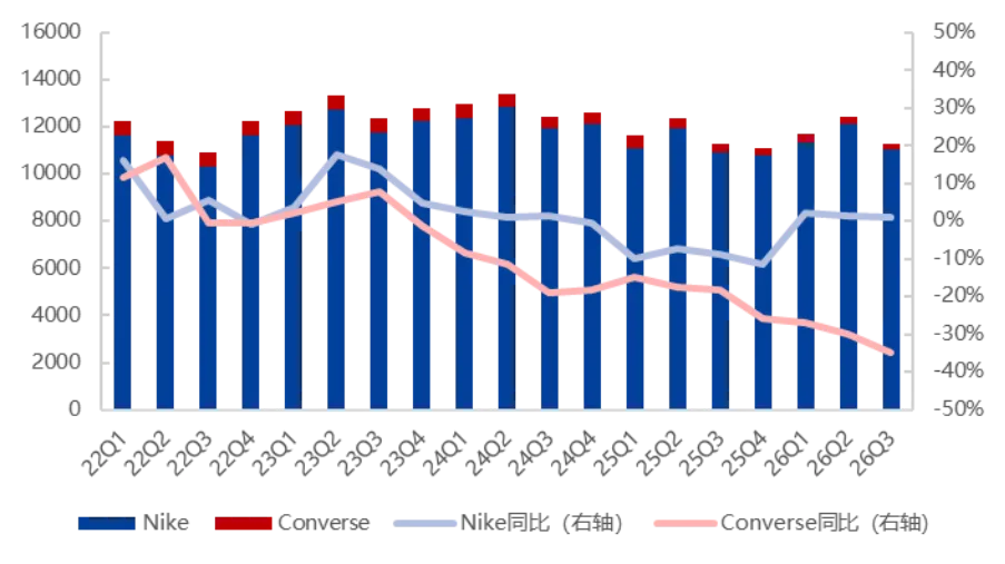 分品牌:Nike保持韧性,Converse 下行压力显著