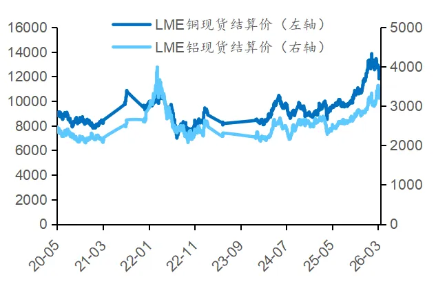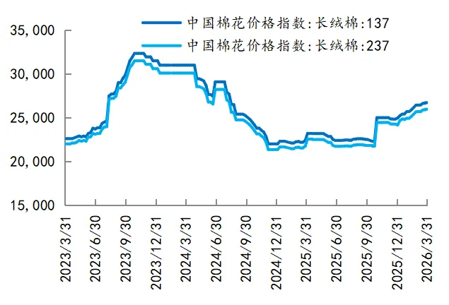 原材料价格方面,LME铜、LME铝环比上周分别+0.8%、+6.5%。本周长绒棉137现货26720元/吨(0.0%)。