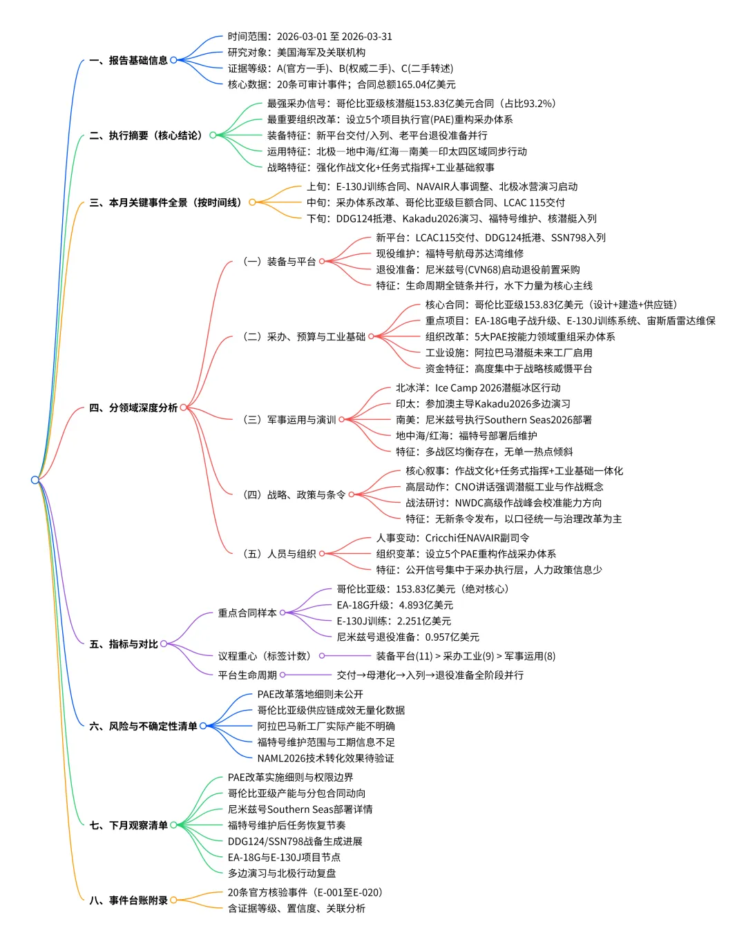 这份月报的吸引力,在于它不是新闻摘编,而是把3月海军动态压缩成一套可审计、可追踪、可比较的观察框架。读者不仅能看到发生了什么,更能看清哪些是真正重要的信号。