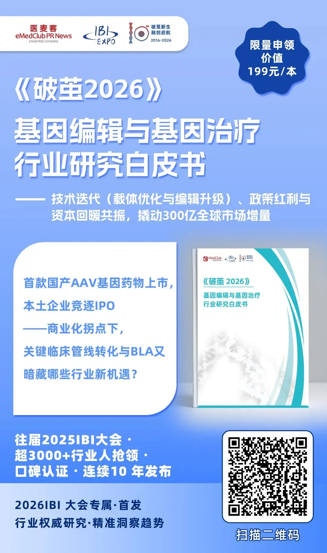 医麦客精心编纂并正式发布 《破茧2026 · 基因治疗行业研究白皮书》 ,本书以「破茧」为轴,梳理 2025 年行业脉络,展望 2026 年关键节点,试图在不确定性中锚定基因治疗的价值坐标与破局路径。