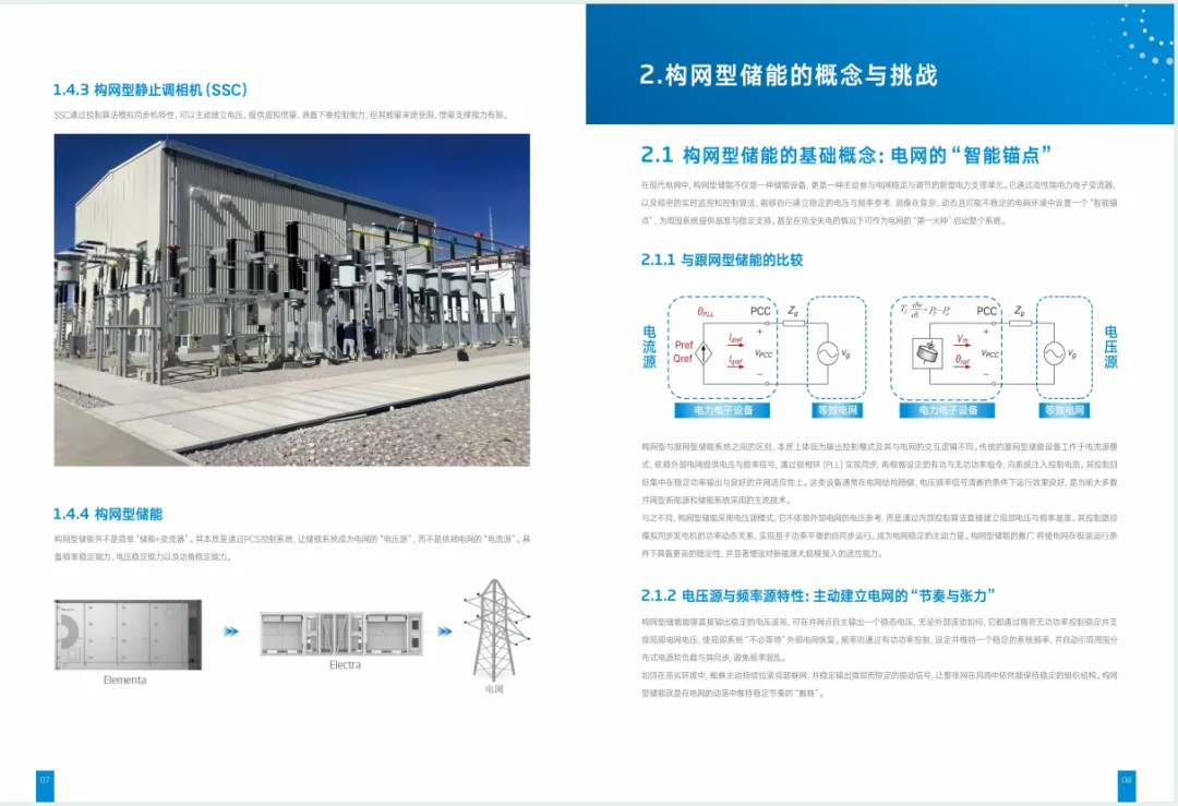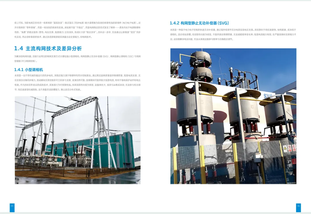 全球能源转型下风光高比例并网,电网呈现 “双高” 特征,同步机组减少导致惯量、电压支撑不足,频率、电压、功角波动频发,弱电网问题凸显,构网技术成为新型电力系统稳定的关键。白皮书对比了小型调相机、构网型 SVG、SSC 等主流构网技术的优劣,指出构网型储能兼具能量存储与多维度稳定支撑能力,是最优解之一。