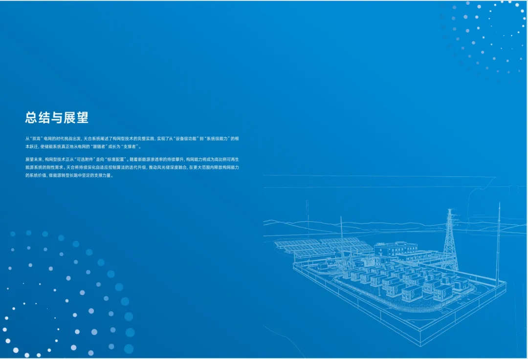最后,构网型技术将从 “可选附件” 成为新能源系统 “标准配置”,天合储能将持续升级算法,推动风光储融合,释放构网技术的系统价值,助力能源转型。