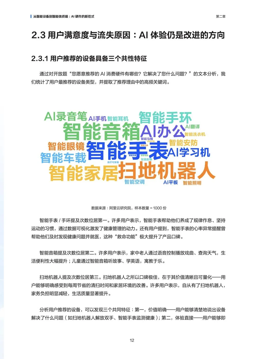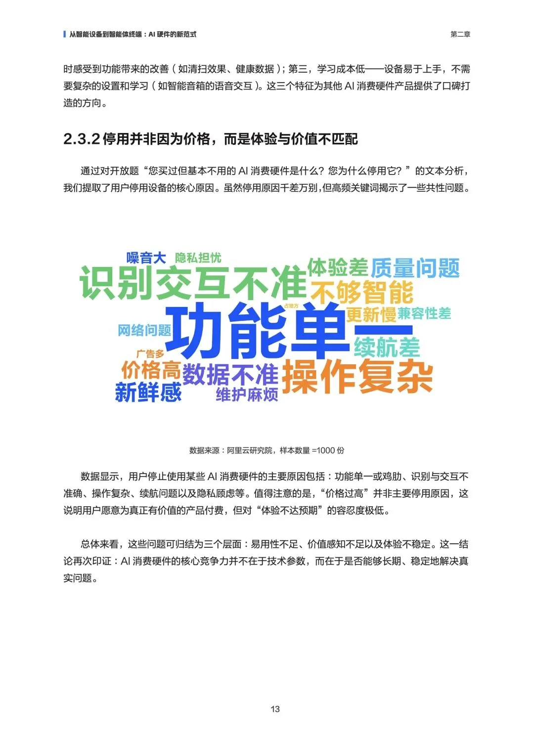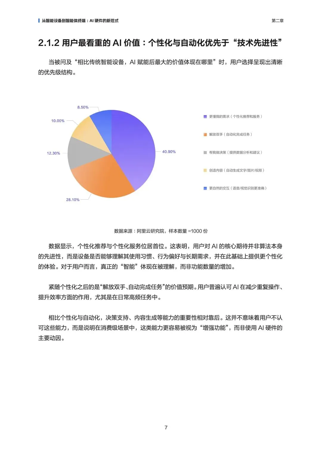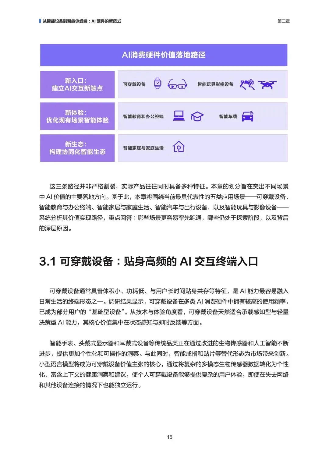 AI 消费硬件不再是叠加功能,而是形成感知 - 理解 - 决策 - 执行 - 学习闭环,走向端侧智能体。分为三层演进:基础自动执行、分析建议、长期协同。成熟产品能自主拆解任务、跨设备联动、持续优化,标志是 AI 融入系统架构,而非外挂功能,核心竞争力是稳定、可用、可感知的真实价值。 - 用户需求明确:为刚需付费,拒绝噱头