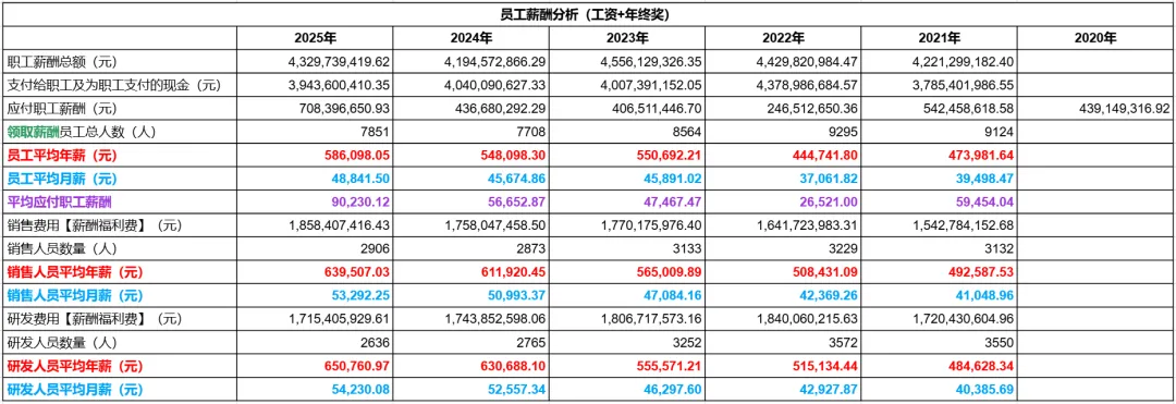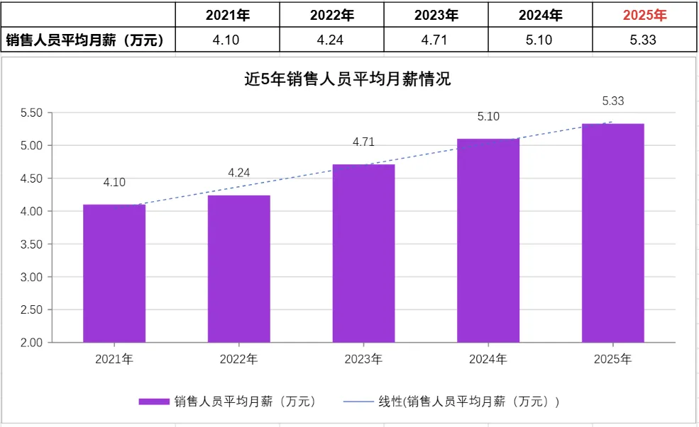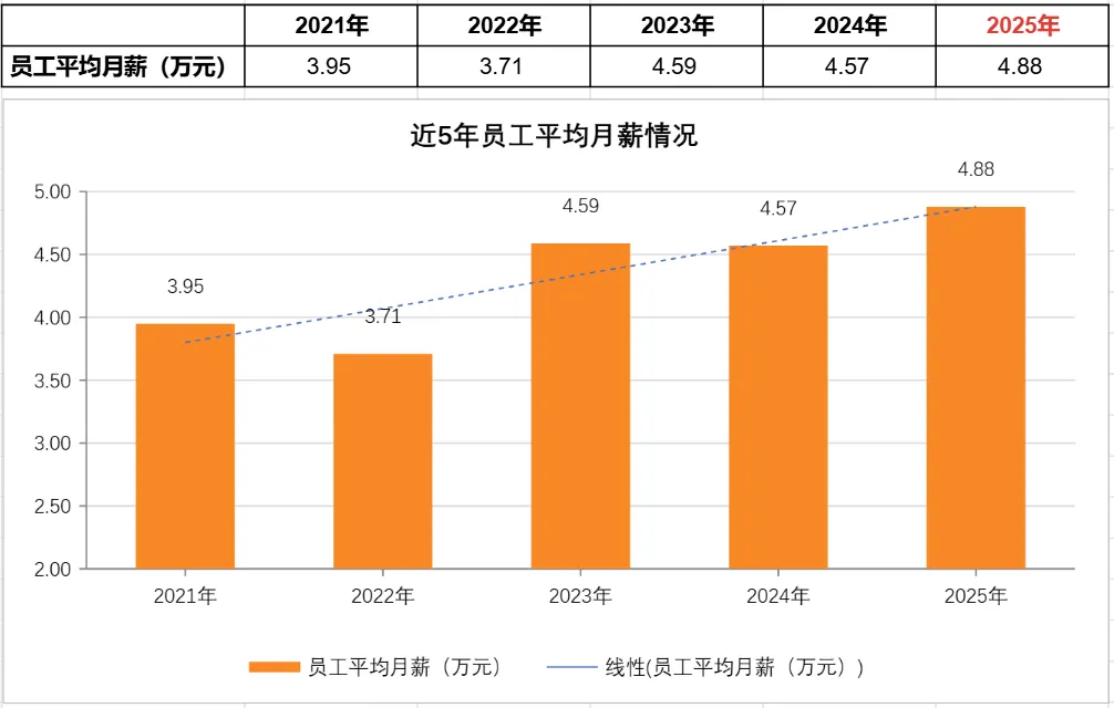2025年员工平均月薪达到4.88万元。其中销售人员月薪达到5.33万元,研发人员达到5.42万元,薪酬是所有工资、年终奖及其它社保、公积金、福利等。