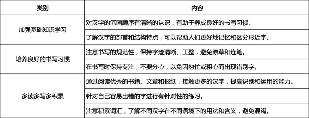 (4)故意用错:如将“一见钟情”写成“衣见钟情”,将“终身无憾”写成“终身无汗”等。人们为追求新鲜而故意用错。2. 规避错别字的方法