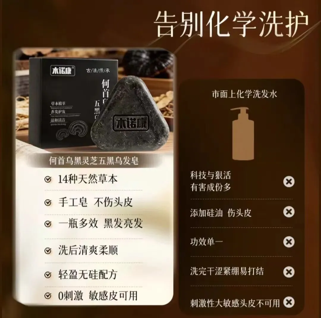 1. 误区1:洗发皂越香越好——香味浓郁的洗发皂,大多添加了人工合成香精,长期使用会刺激头皮,容易导致头皮敏感、瘙痒,甚至加重脱发;优质洗发皂大多采用天然植物调香,香味清新淡雅,不刺鼻,既不会刺激头皮,还能带来舒适的使用体验,比如木诺康五黑洗发皂,就是天然植物香气,温和又好闻。