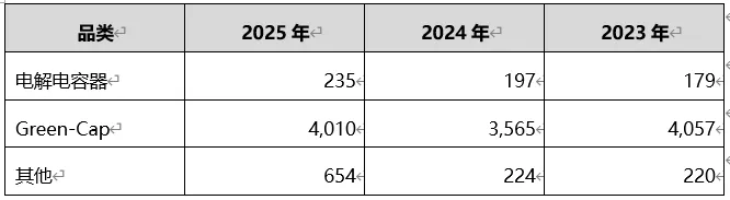 2025年度销售收入为2300.68亿韩元(约合10.54亿元人民币),较去年同期相比减少1.3%,其中电解电容器收入为1185.55亿韩元(约合5.43亿元人民币)占比51.7%、Greep-Cap超级电容器收入为56.28亿韩元(约合2578万元人民币)占比2.1%,其他产品收入为146.08亿韩元(约合6690万元人民币),销售电容器以外商品收入为913.97亿韩元(约合4.19亿元人民币)。