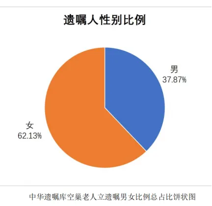 空巢老人来立遗嘱的女性比例高于男性,这倒不是说女性更重视遗嘱,或许是能活到空巢岁数的女性更多。