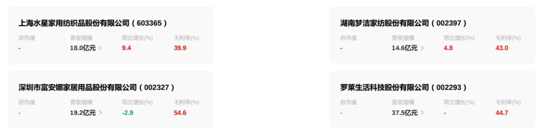 涵盖水星家纺、富安娜、罗莱生活等综合家纺上市企业,依托品牌资源布局蚊帐赛道,发力高端化、智能化产品。