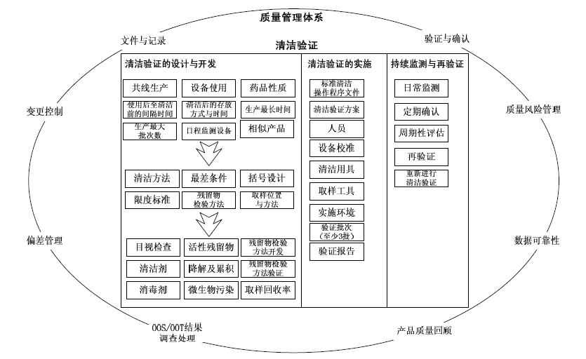 在全球的药品检查中也发现药品生产企业关于生产设备清洁验证方面较容易出现缺陷,其中一些问题还可能影响药品质量,甚至导致药品安全问题。如何在质量管理体系及验证生命周期层面做好生产设备的清洁验证是保证药品质量的关键内容,有必要进行针对性的分析研究。