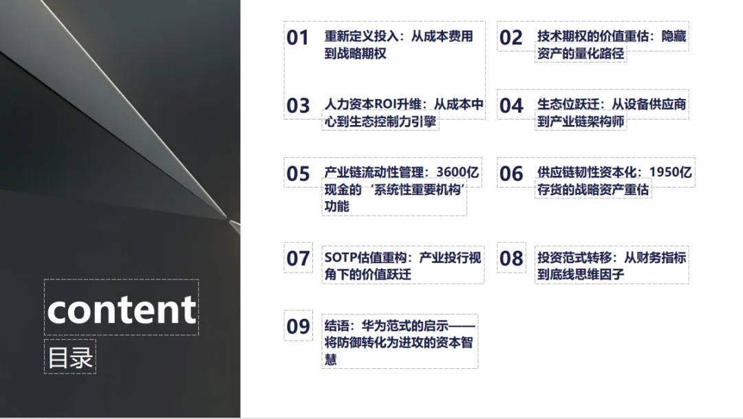 本报告以产业投行的专业框架,系统拆解了这一价值重构的逻辑与路径。我们相信,这套方法论不仅适用于华为,更应成为评估中国科技产业链核心企业的新标尺。