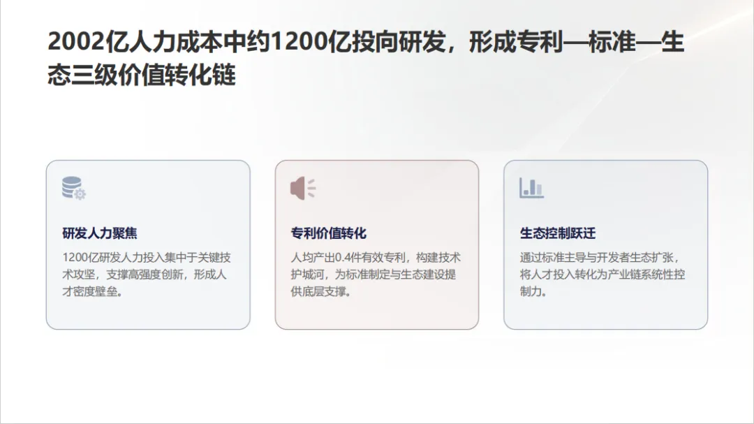 · 2002亿人力成本 → 不是支出,而是构建生态网络控制力的“人力资本配置”,ROI达传统口径的10-20倍;