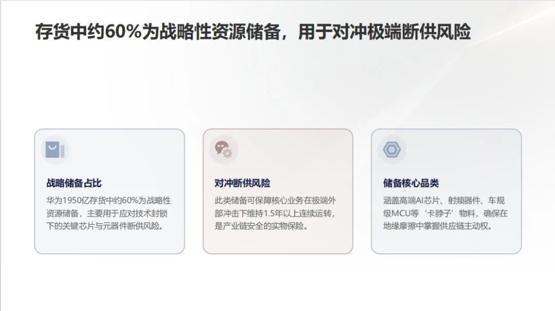 · 1950亿存货 → 不是周转负担,而是“断供保险资产”,战略价值约为账面价值的1.8-2.0倍。