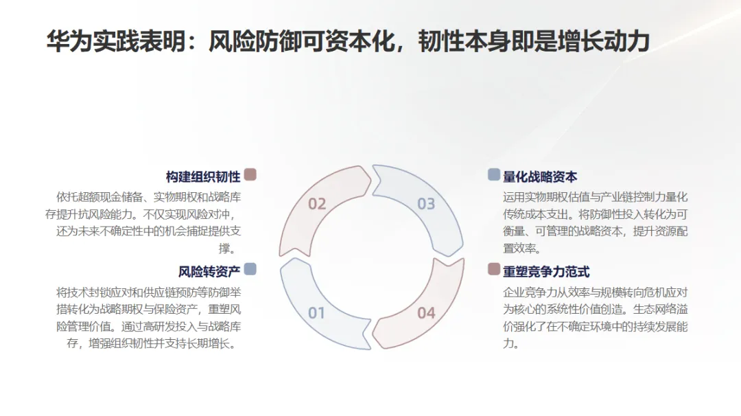 本报告将华为的四类“防御性投入”重新定义为战略资产: