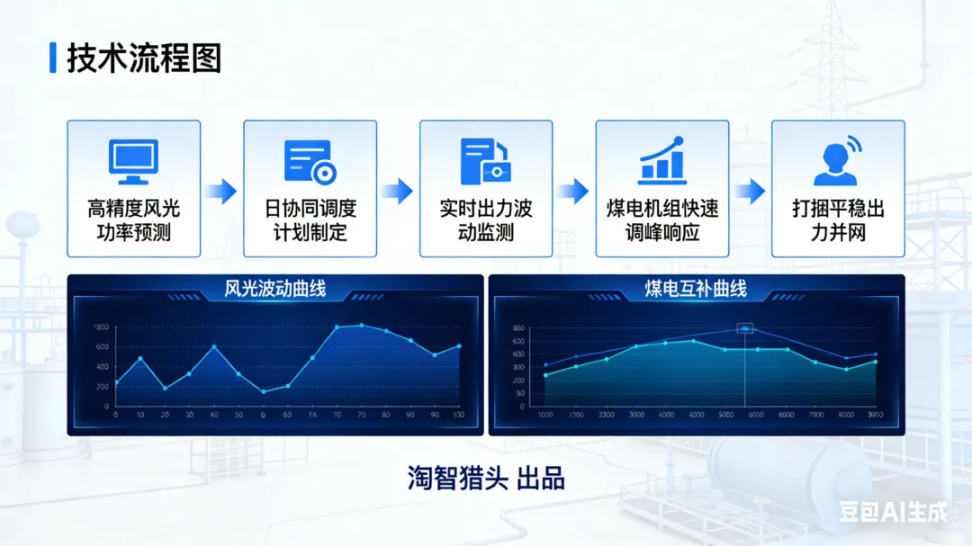 联营模式的技术核心,是通过“功率预测-协同调度-实时调节”的闭环技术体系,实现风光出力与煤电出力的精准互补。具体逻辑为:通过高精度功率预测系统,提前24小时预测风光项目的出力曲线与电网负荷曲线,制定煤电机组的日调度计划;在实时运行中,根据风光出力的实时波动,通过煤电机组的快速调峰能力,实时填补风光出力的缺口,平抑波动,最终实现打捆出力的平稳可控,满足电网并网要求。