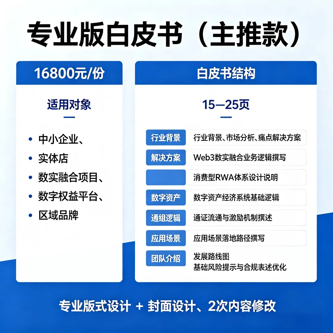 当Web3技术从概念走向实干,当消费型RWA成为连接数字与实体的核心纽带,一份专业、合规、有落地性的白皮书,早已不再是项目的“门面”,而是传递核心价值、对接资源、规避风险的“核心凭证”。