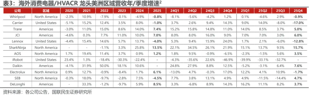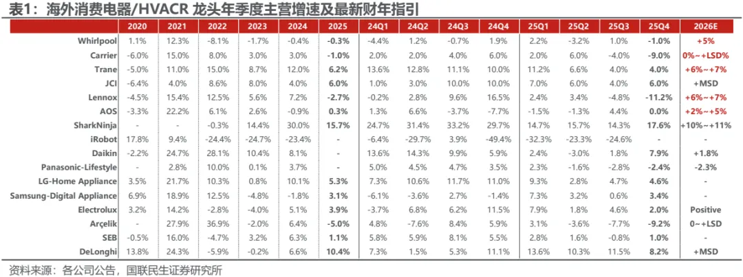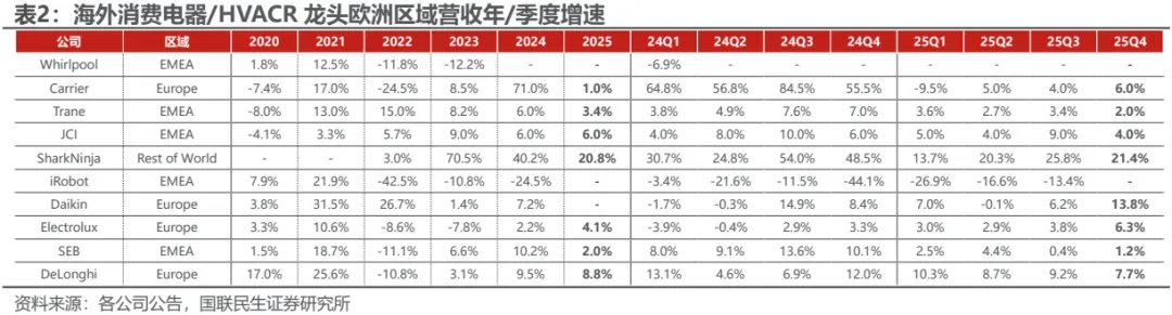 报告标题:海外家电财报跟踪2025年报篇:商用HVAC订单高增,消费电器需求弱平稳