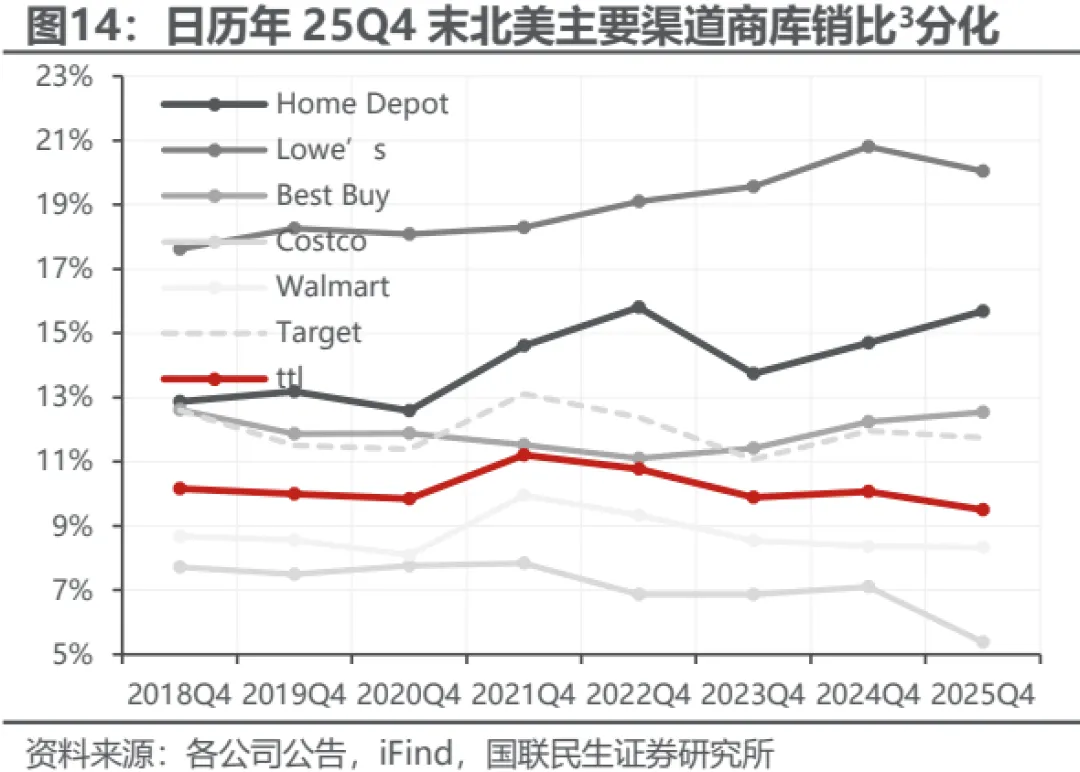 价格上,HVAC多有提升,消费电器展望积极。披露价格/结构影响的公司中,Whirlpool当季Price/Mix同比负向影响EBIT 1pct,25Q3为+0.5pct,指引FY26正贡献1.75pct,较25全年扩大1pct+,驱动来自新产品上市及已落地的价格调整(pricing actions);HVAC公司中,Trane FY25全年价格因素贡献3%营收增长,Lennox价格+结构贡献9%,Daikin售价驱动空调日历年25Q2~25Q4累计OPM同比+2.4pct,持续正贡献。
