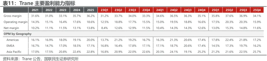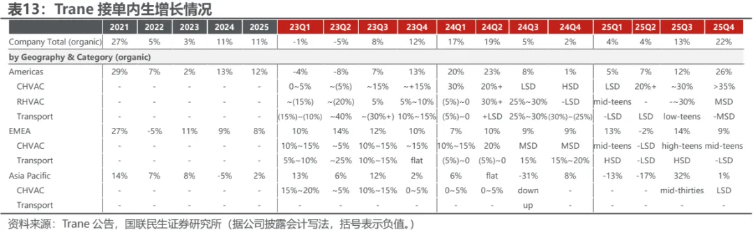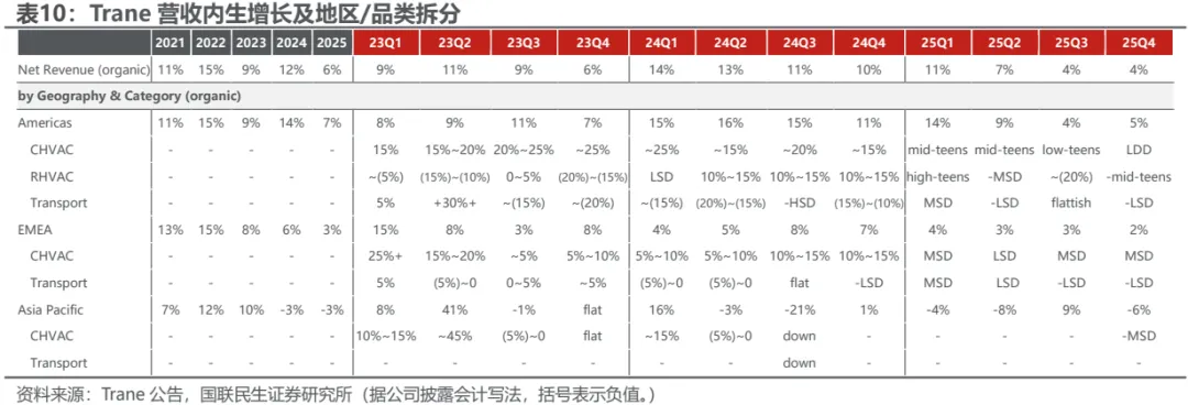 Trane:25Q4收入内生同比+4%,26年预期+6%~7%
