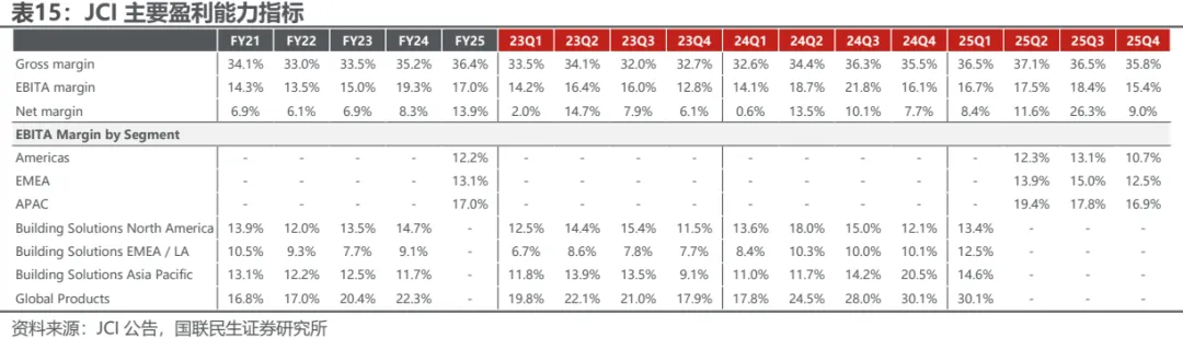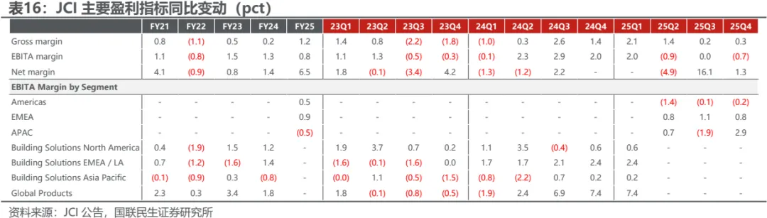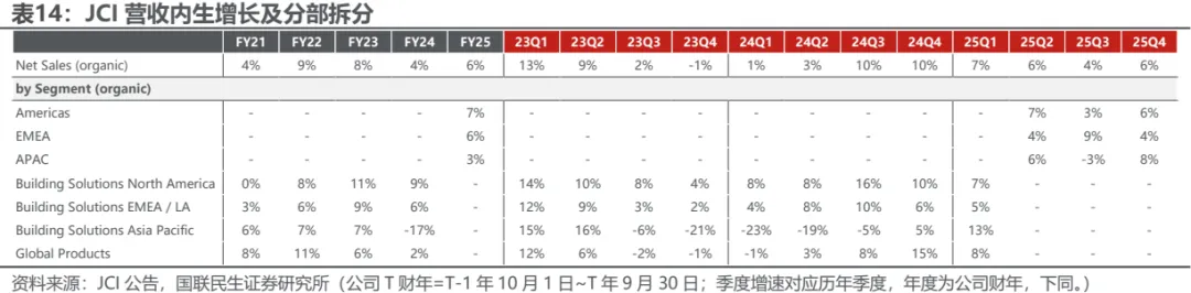 JCI:25Q4收入内生同比+6%,26年预期中个位数增长