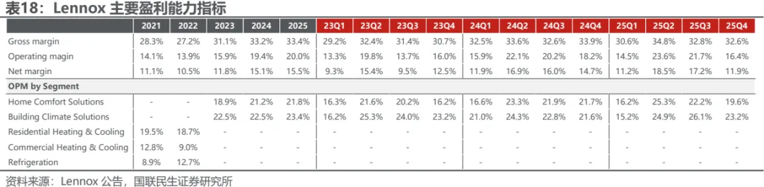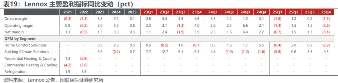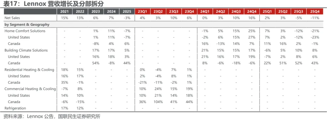 Lennox:25Q4收入内生同比-11%,26年预期恢复至+6%~7%