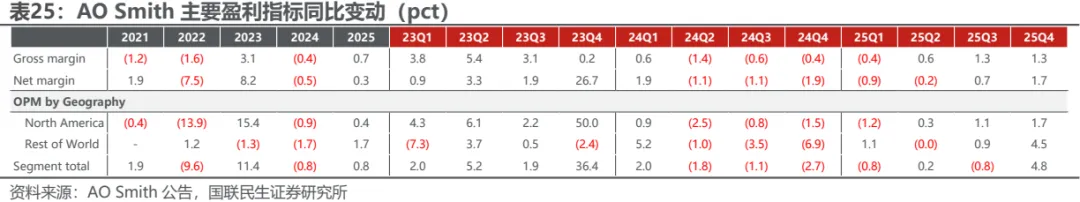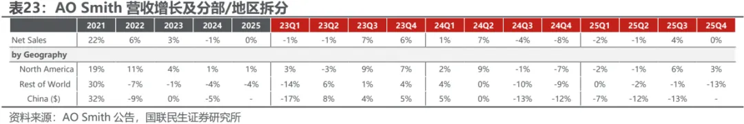 AO Smith:25Q4收入同比持平,26年预期修复至+2%~5%
