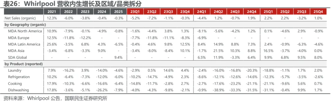 Whirlpool:25Q4收入同比-1%,26年预期+5%
