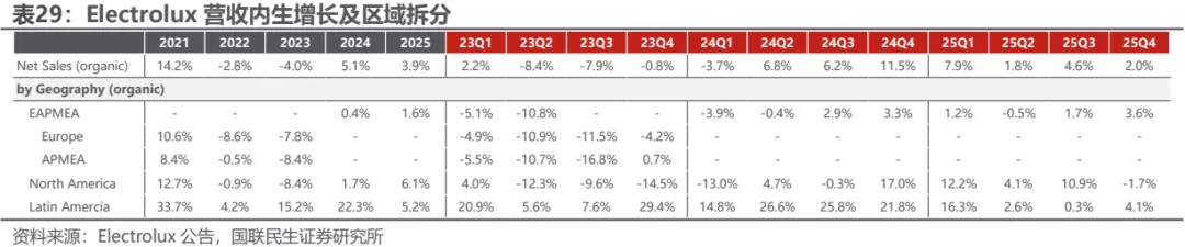 Electrolux:25Q4收入内生同比+2%,26年量价预期正面