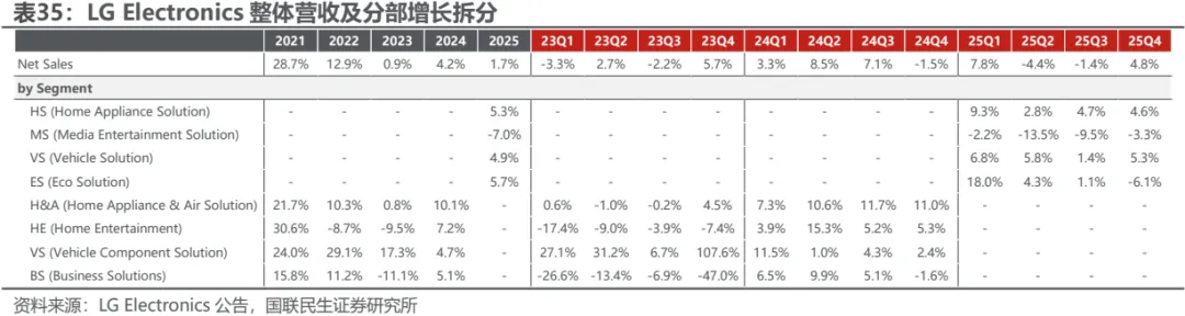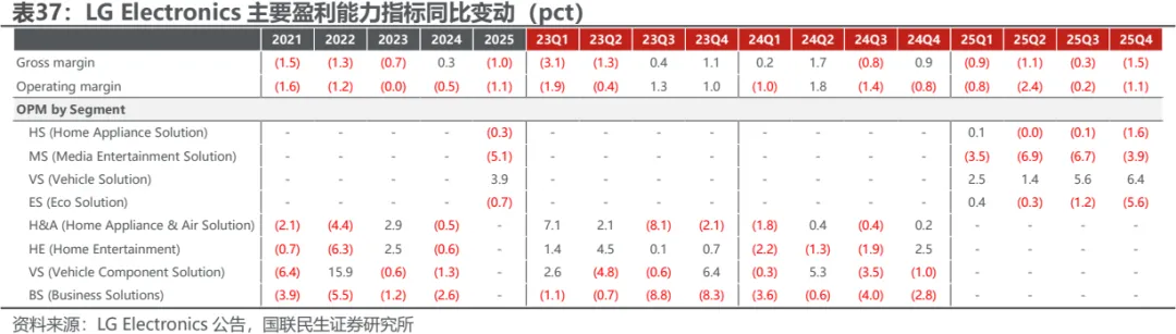 LG:25Q4家电收入同比+5%,人员优化影响盈利