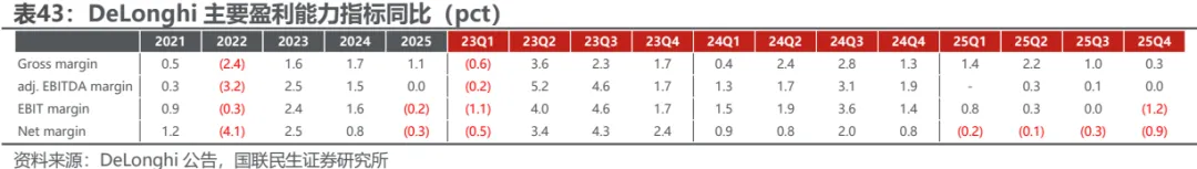 DeLonghi:25Q4收入同比+8%,26年预计高个位数增长