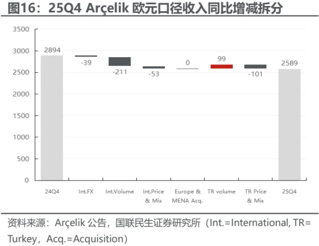Arçelik:25Q4欧元内生-9%,26年预计恢复平稳