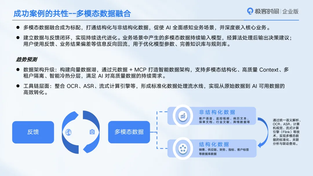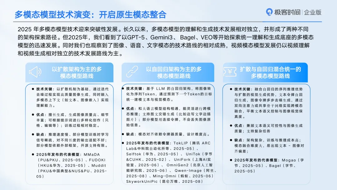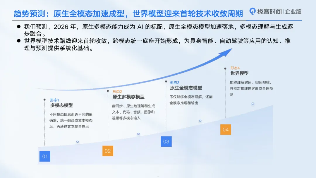 2026 年中国企业 AI 应用进入价值化落地阶段,多模态模型技术持续演进,扩散与自回归混合架构成为主流方向,原生全模态模型与世界模型逐步成型。超级智能体替代传统聊天机器人,成为企业业务重构与产业落地的核心执行者。七成以上企业已搭建智能体平台,通用协作与办公场景仍是主流应用方向,行业数字化水平与大模型应用率呈正相关关系。企业 AI 落地集中在效率提升、风险管控、精准决策、全链路协同、合规保障五大场景。金融、零售、能源、制造等行业形成成熟落地案例,AI 深度嵌入核心业务流程,实现降本增效与风险防控。成功落地企业具备可量化价值、匹配场景成熟度、可持续运营三大共性,采用多智能体架构与领域知识融合方案,保障应用稳定性。企业 AI 应用呈现四大趋势,从工具化走向业务深度绑定,构建多元 ROI 评价体系,以人机协同降低业务操作门槛,将知识资产转化为核心竞争力。技术层面聚焦知识工程、模块化架构与本地部署,兼顾合规安全与成本优化,推动 AI 规模化应用。