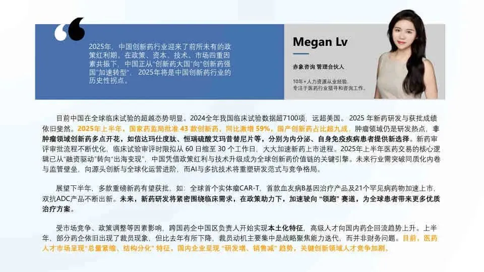 该报告的核心聚焦于中国生物制药行业的宏观环境、市场动态、创新趋势以及人才现状与流动。以下是其关键信息的总结归纳: