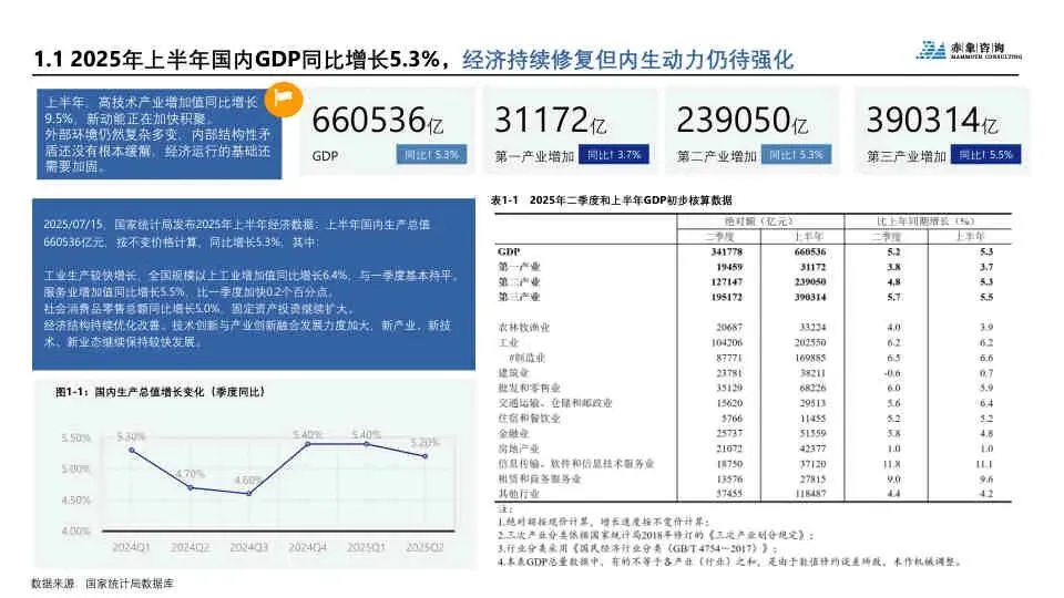 - 经济稳健增长: 2025年上半年GDP同比增长5.3%,高技术产业增加值增长9.5%,为医药行业提供良好基础。