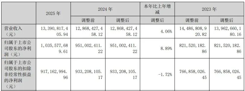 4月6日,万向钱潮披露2025年年度报告,全年实现营业收入133.91亿元,同比增长4.06%;归母净利润10.36亿元,同比增长8.89%,实现连续五年净利正增长。同时公司推出每10股派现2元的分红方案,并宣布1.2亿元增资泰国子公司推进海外产能布局。这份年报呈现出“国内稳健、海外走弱、利润微增、现金流强劲、库存高企”的复杂格局。