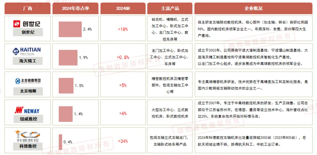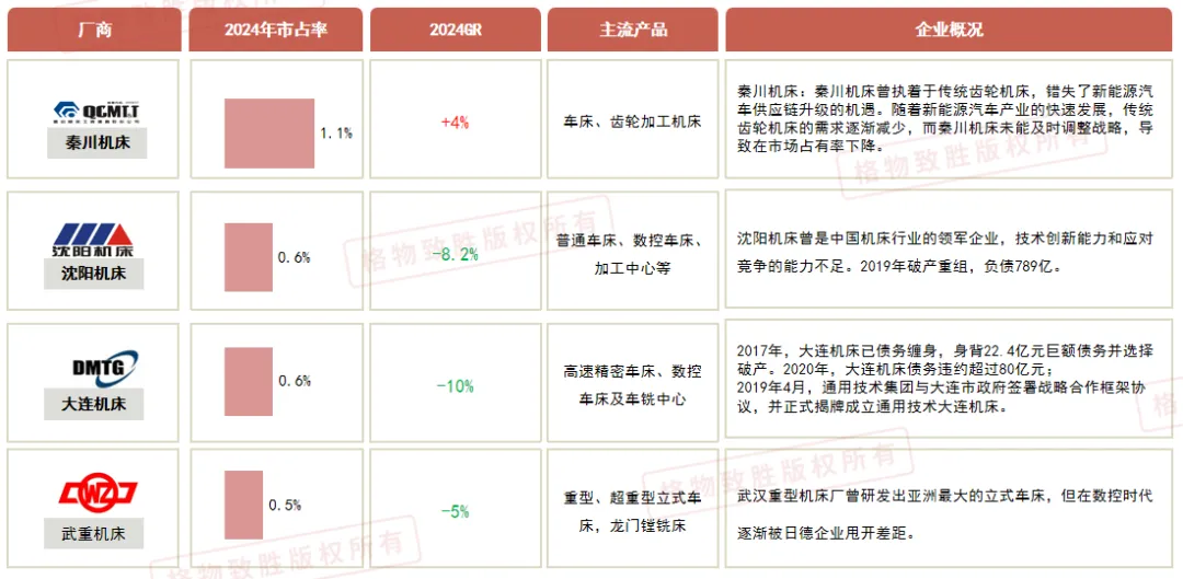 外资品牌主导高端数控产品,国内头部厂商国产替代加速,小型民营以价格优势扩大市场份额。