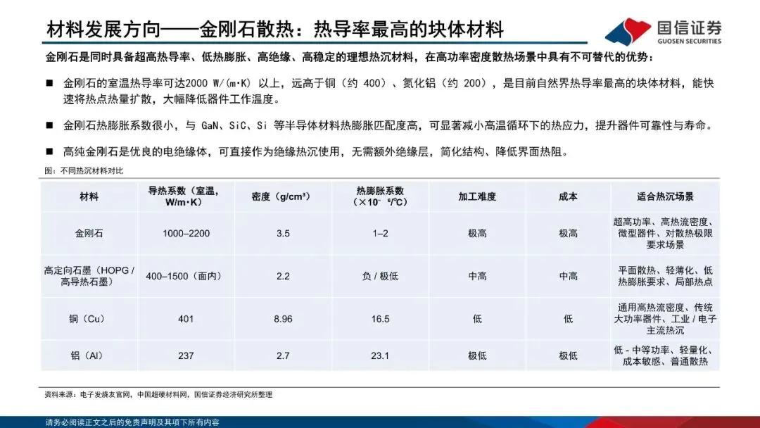 AI时代下液冷已成大势所趋,新技术新材料的变革成为更受关注的前沿方向。目前冷板式液冷仍为未来3-5年内的主流方案,在此基础上微通道、3D打印液冷冷板、金刚石散热、液态金属优化TIM等方向有望在传统液冷方案上实现进一步优化。