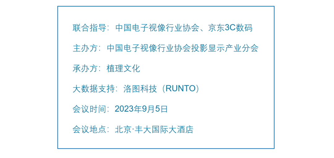 市场已经进入新一轮调整期,是挑战也是机遇。为更好地应对市场变化,2023年9月5日下午,由中国电子视像行业协会和京东3C数码联合指导,中国电子视像行业协会投影显示产业分会主办,植理文化承办,洛图科技(RUNTO)提供大数据支持的2023 CSPC中国智能投影产业峰会将在北京丰大国际大酒店召开。