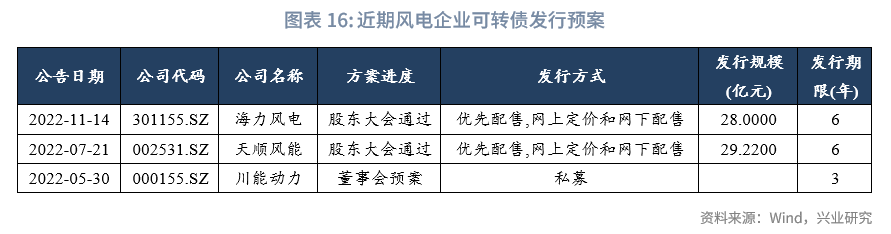 可转债:近期无新增预案,共3起可转债发行预案,披露的发行规模约57亿,涉及风场、叶片和塔筒等环节。近期无预案进度更新。