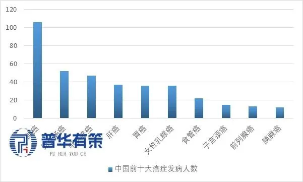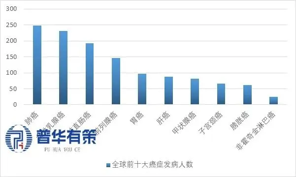 全球前十大癌症发病人数(万人)