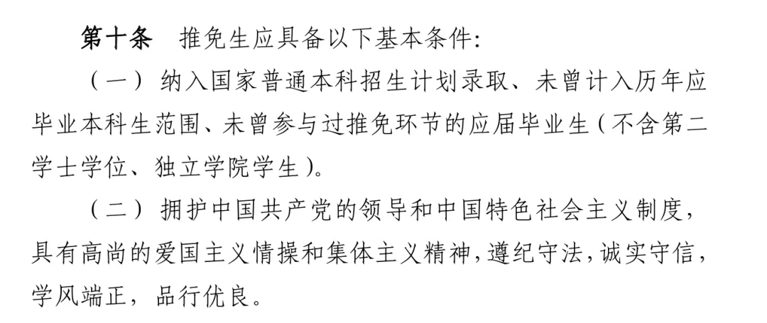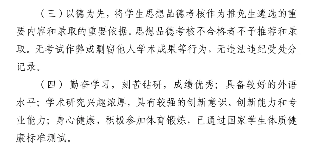 前三学年(五年制专业为前四学年)的学业平均学分绩点(GPA)不低于3.20,且学业平均学分绩点(GPA)排名位于同届同专业前50%(含50%)之内。