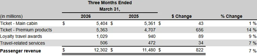 本来以为3月的美伊战争会影响航空业绩,但并没有。公司披露美国国内收入+6%,国际收入+5%。