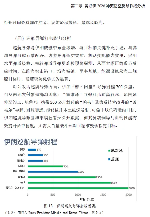 第二章聚焦伊朗远程打击与以色列防空反导作战。在这场战争中,防空反导成为核心对抗领域,决定着战争进程与未来走向。文章在梳理伊朗军队导弹及无人机打击能力与以色列军队(及美国支援)防空反导体系的基础上,结合双方既往多轮直接攻防实战情况,综合分析了本轮冲突中双方攻防策略与作战成效。