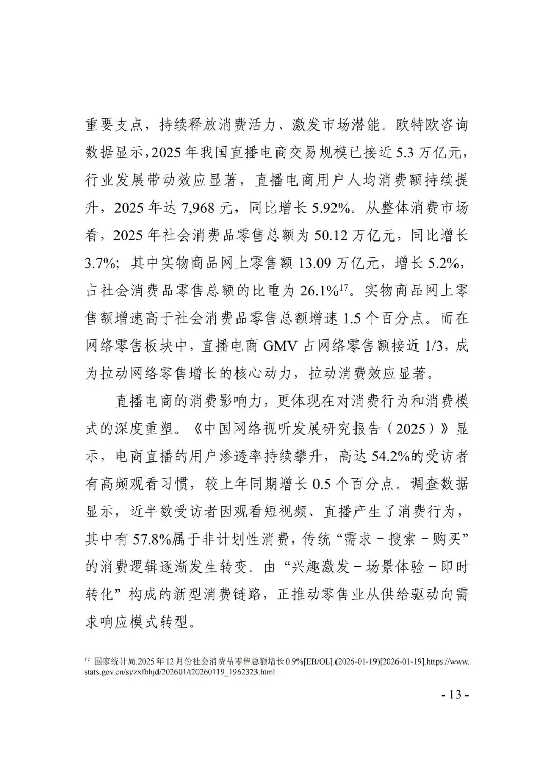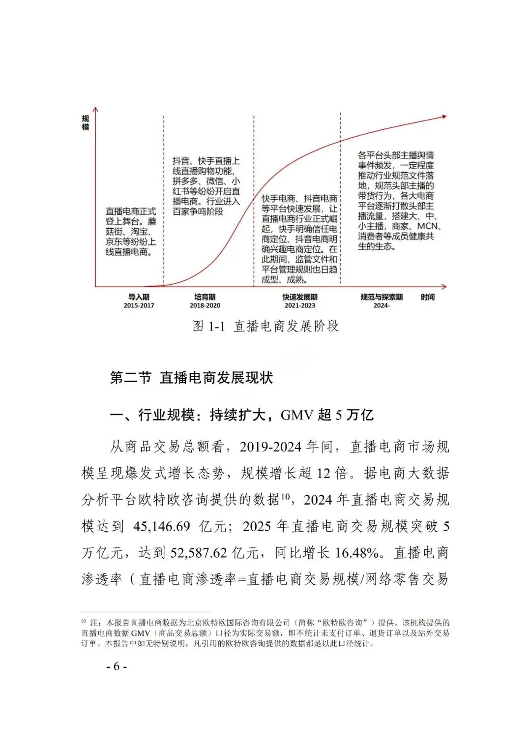 数据显示,2025年直播电商GMV(商品交易总额)超5万亿元,占网络零售额近三分之一,行业用户规模预计达6.6亿。近十年,相关企业注册量整体呈显著增长态势,国内现存直播相关企业超250万家。直播电商在促进消费、扩大就业、推动实体经济发展等方面发挥着重要作用。