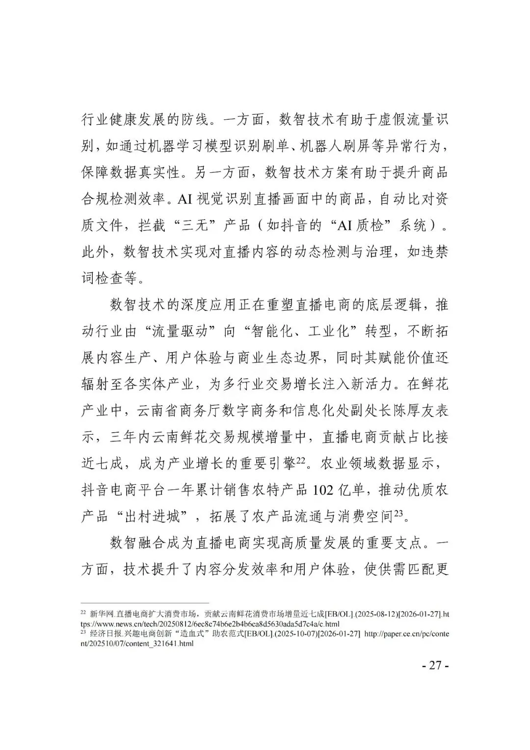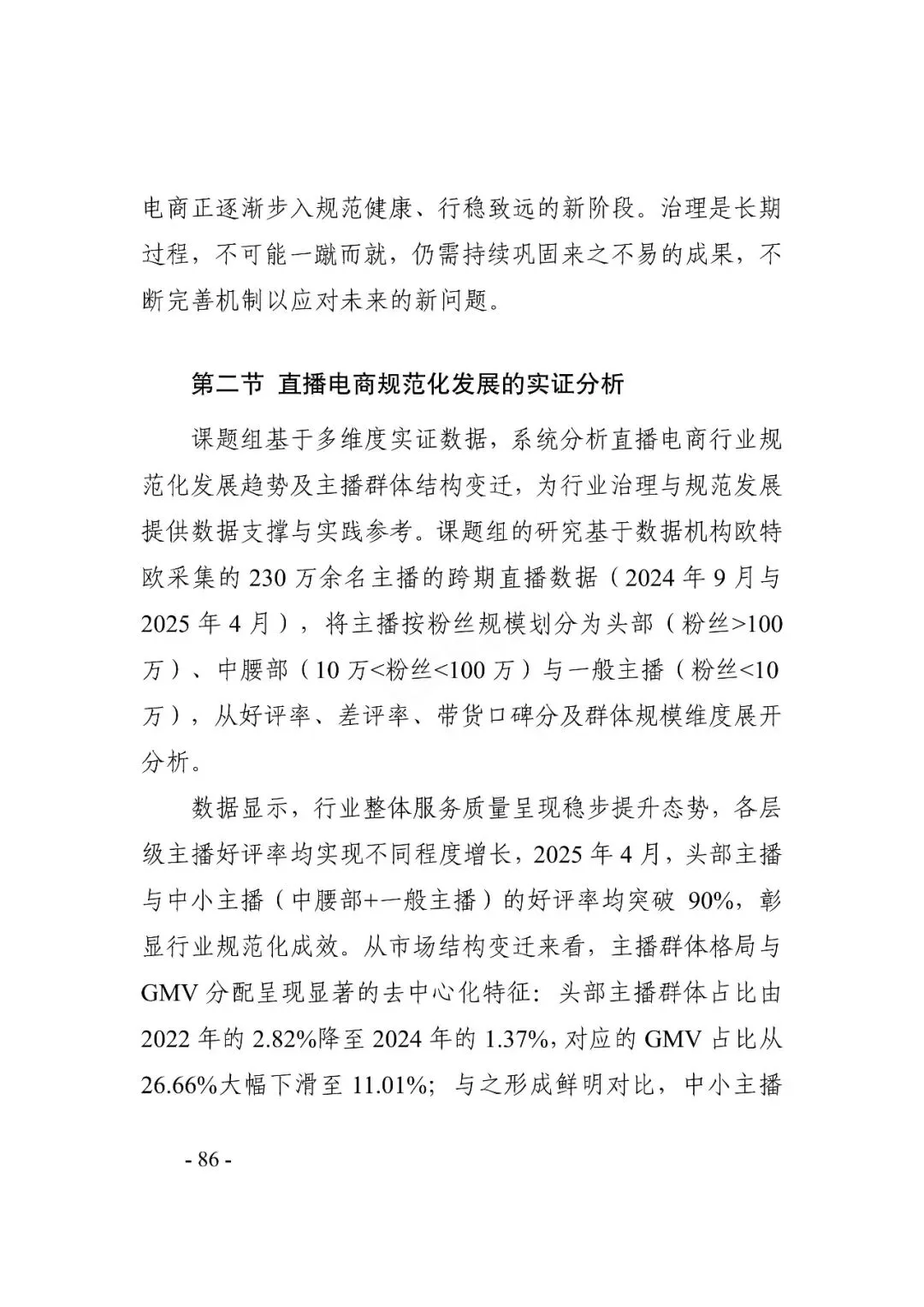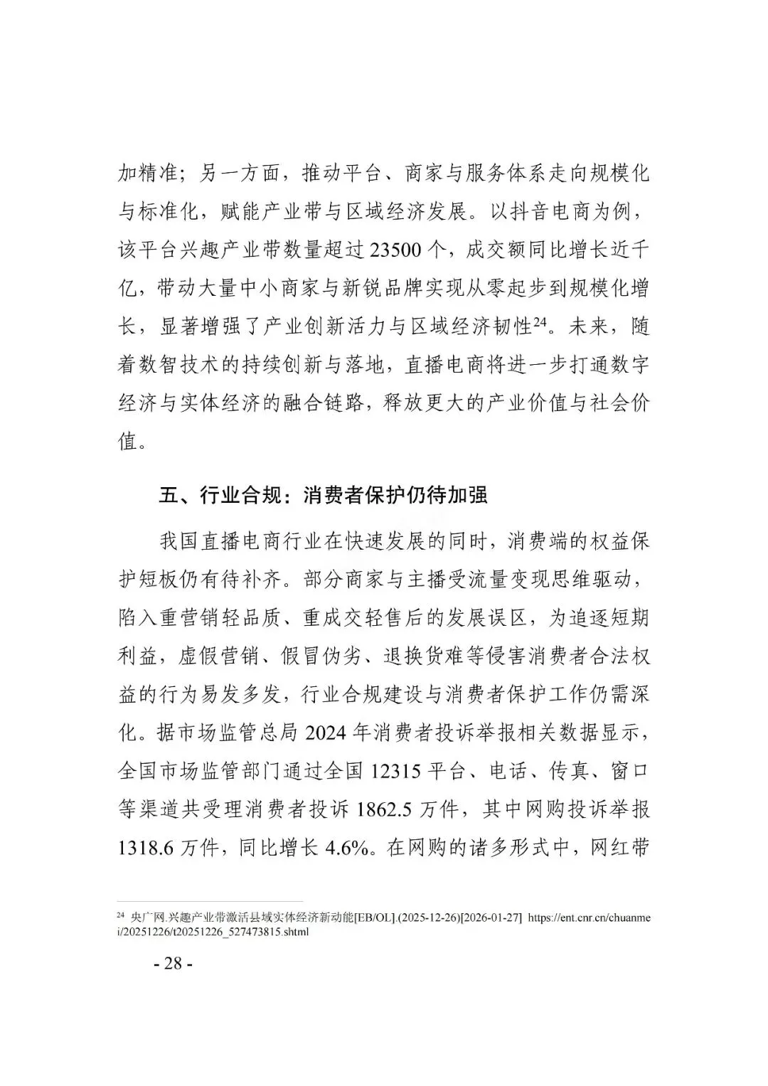 直播电商是近年来我国数字经济领域增长最快、创新最活跃的商业模式之一。近日,市场监管总局发展研究中心与中国社会科学院财经战略研究院课题组联合发布了《2025直播电商行业发展白皮书》(以下简称白皮书),梳理当前直播电商行业的发展现状、挑战、治理成效等,并对行业未来发展提出建议。
