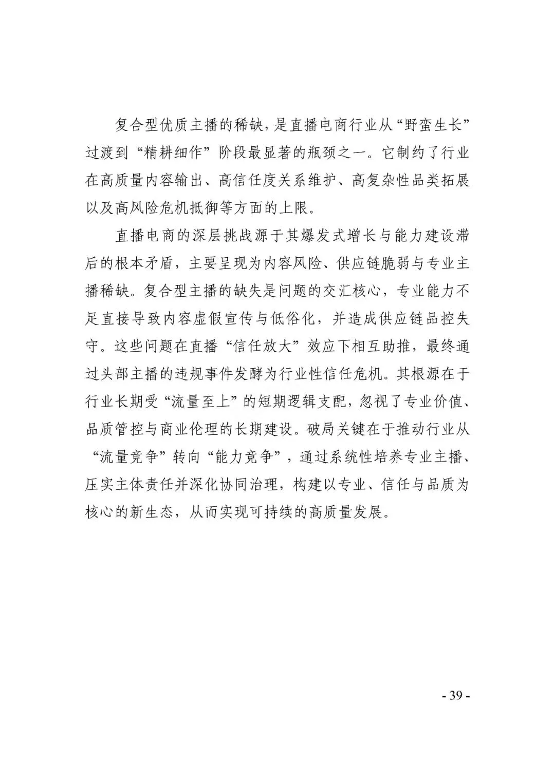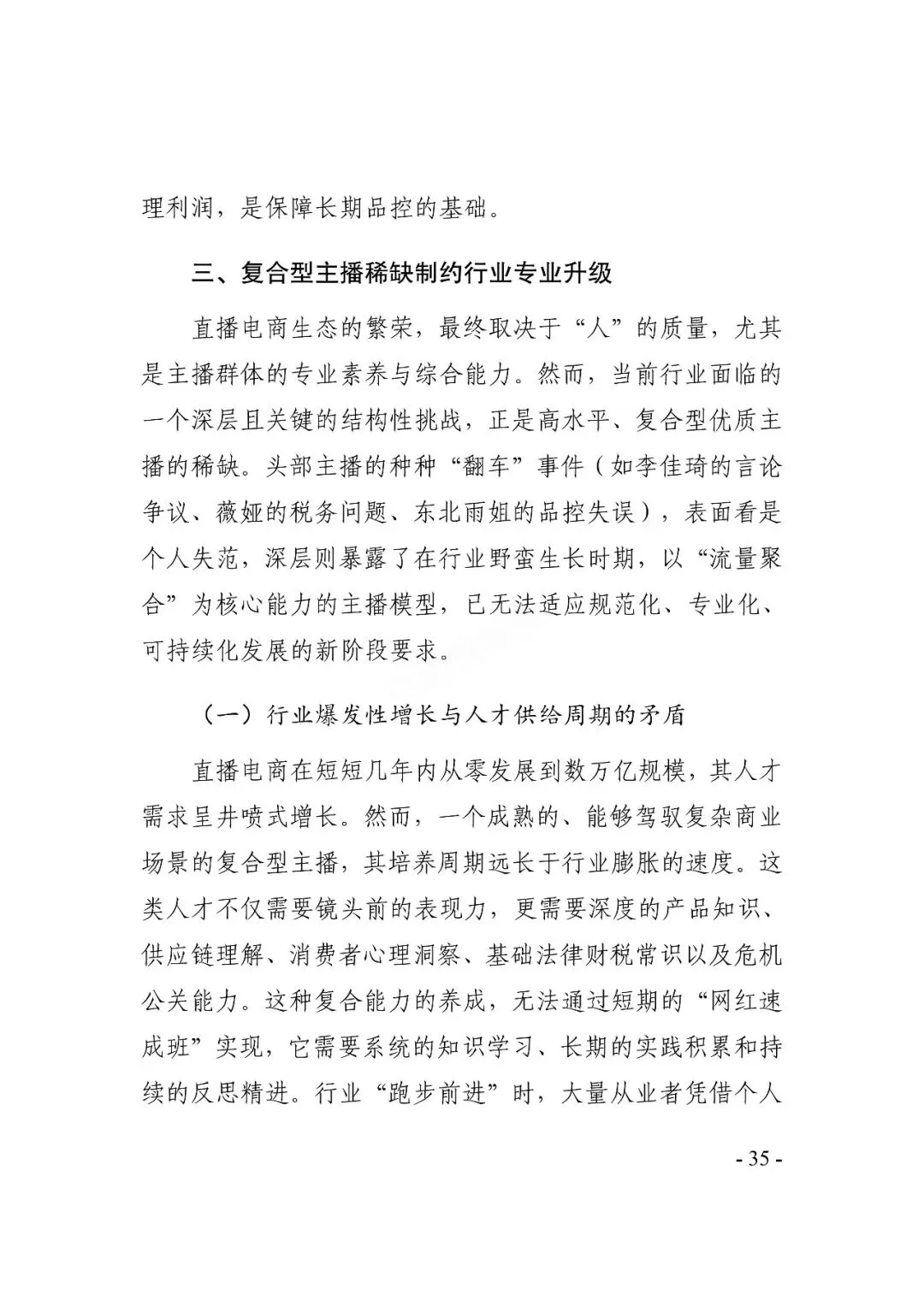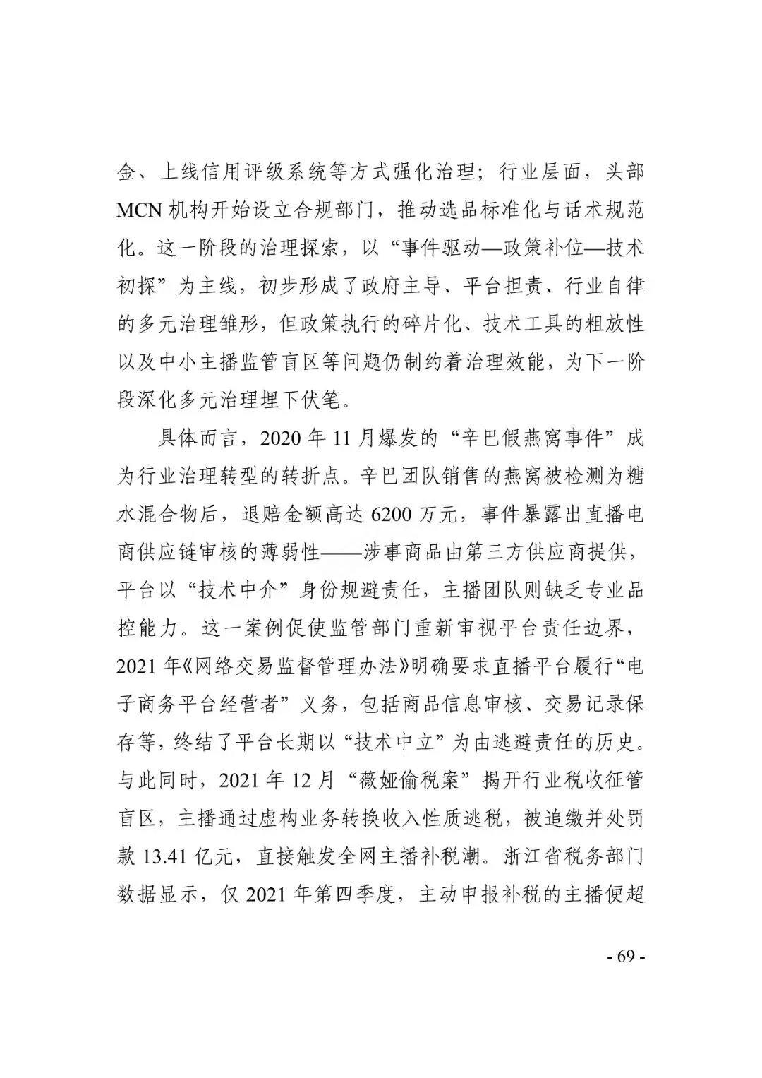 在繁荣发展同时,直播电商也面临一些挑战:直播电商具备互动化、场景化特征,行业内容多元性增加了治理难度;同时,行业涉及众多主体,加剧了供应链复杂性、提升了选品要求;此外,头部主播的不当行为还易引发行业舆情,影响行业声誉。多方协同治理深化,多元、规范发展成行业共识 。