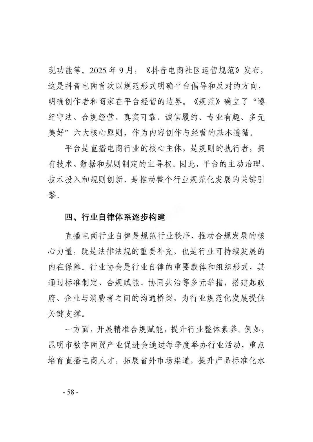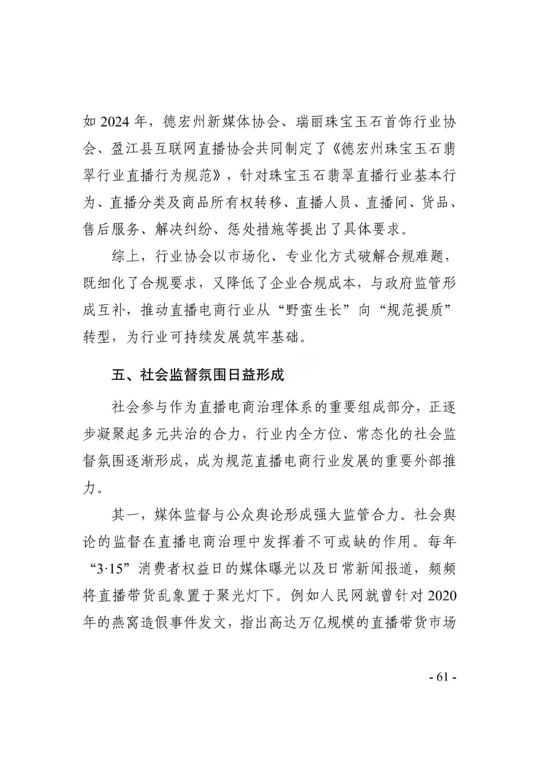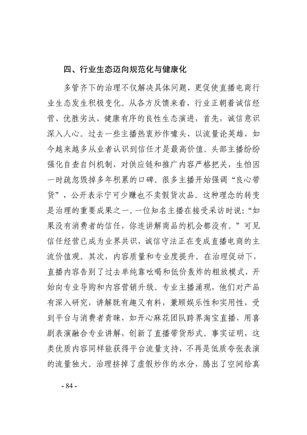 在繁荣发展同时,直播电商也面临一些挑战:直播电商具备互动化、场景化特征,行业内容多元性增加了治理难度;同时,行业涉及众多主体,加剧了供应链复杂性、提升了选品要求;此外,头部主播的不当行为还易引发行业舆情,影响行业声誉。多方协同治理深化,多元、规范发展成行业共识 。