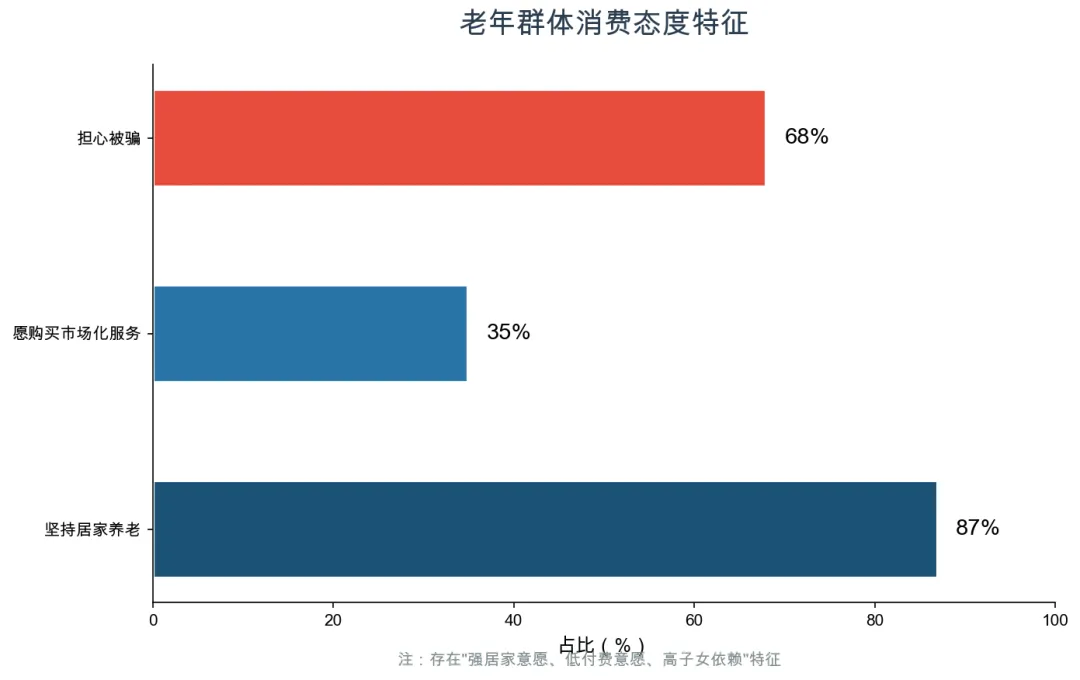 北京协和医学院刘远立教授团队于2025年所作的《全国老年人群居住意愿调研》显示,87%的老年人明确首选居家安养,而拒绝机构养老的主要原因,集中在生活习惯、情感归属等自主意愿层面,居家养老并非阶段性选择,而是我国养老模式的绝对主体。