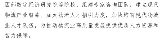 二是政策措施保障有力。围绕全国性综合交通枢纽城市打造秦巴区域综合交通枢纽和商贸物流中心等战略定位,区委、区政府确立现代物流产业链,先后出台《促进现代物流业高质量发展实施意见》《现代物流产业链链长制工作方案》《进一步降低物流成本的实施方案》等政策文件,为全区现代物流产业发展提供有力保障支持。