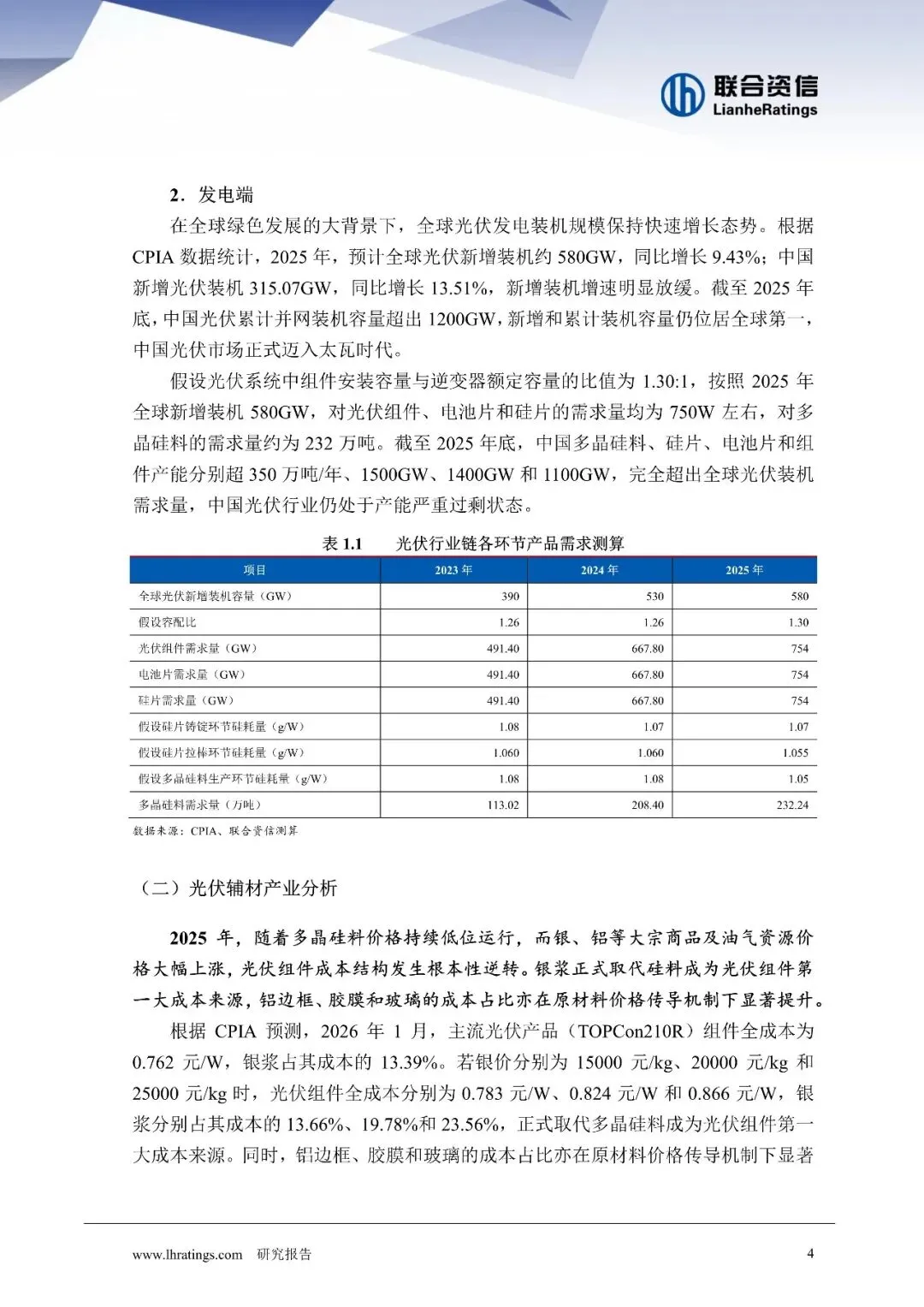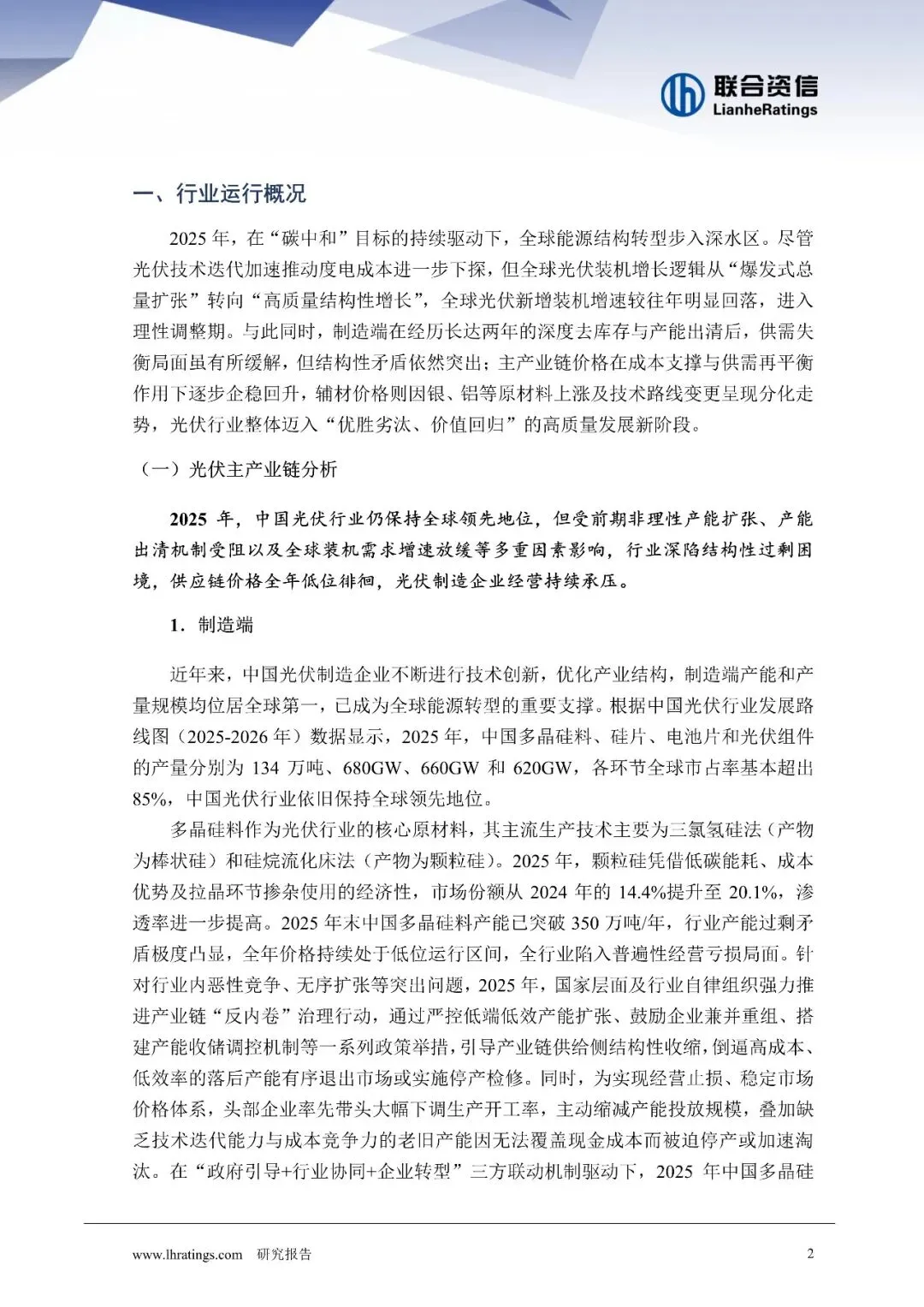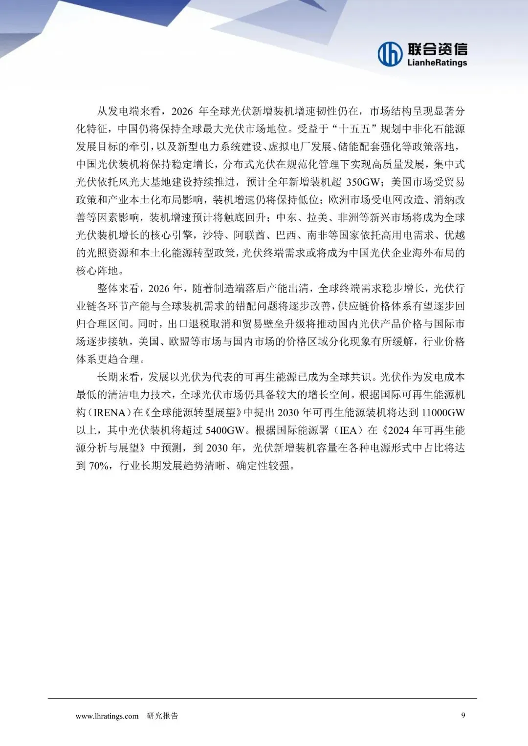 报告名称:2026年光伏行业分析 出 品 方:联合资信
